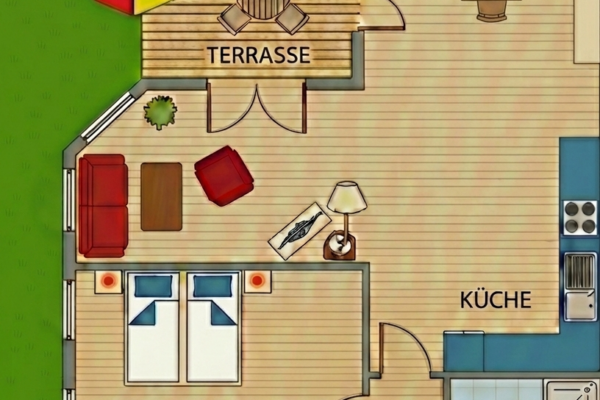 - Ferienwohnung (ca. 70 m²) mit Terrasse und direktem Gartenzugang