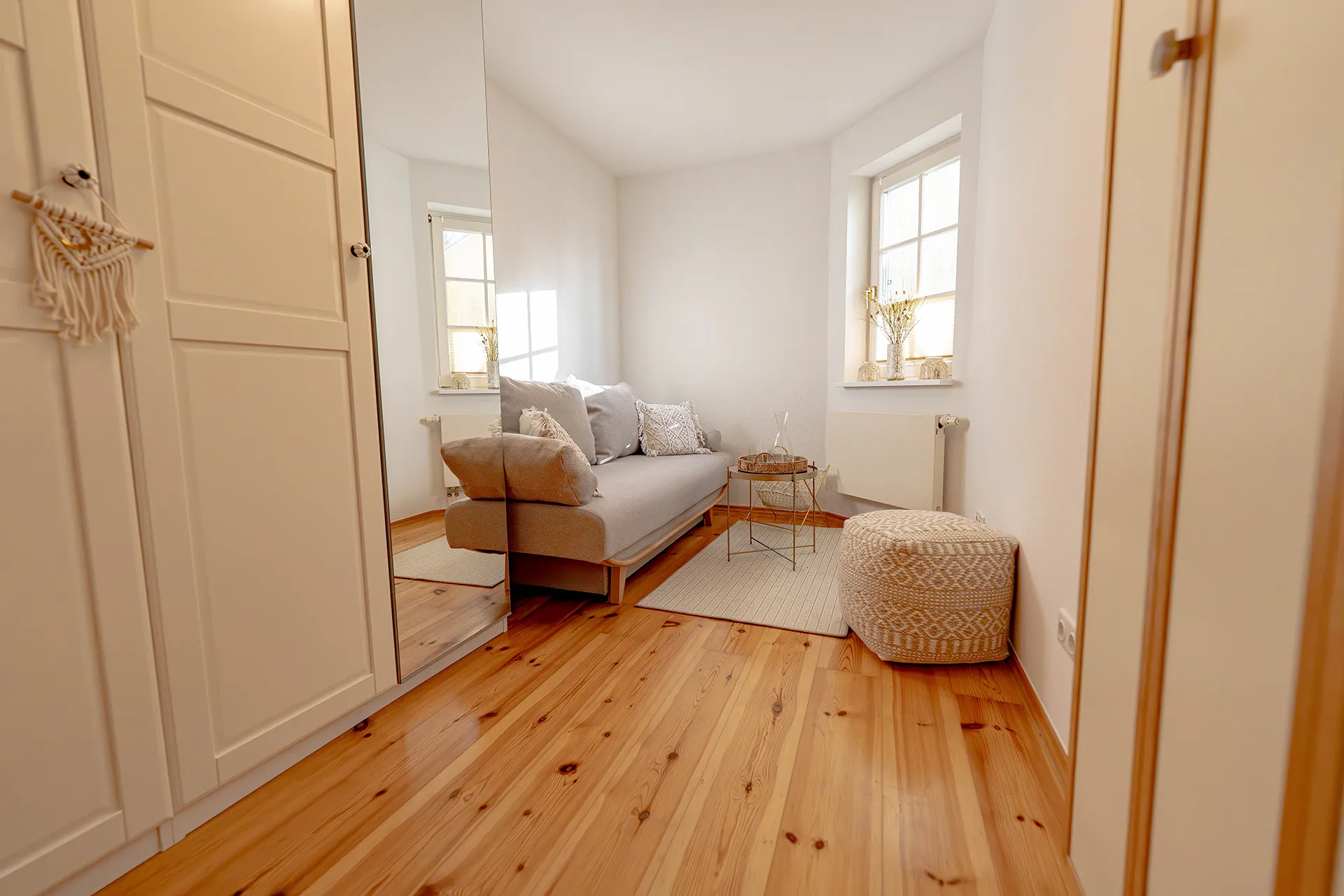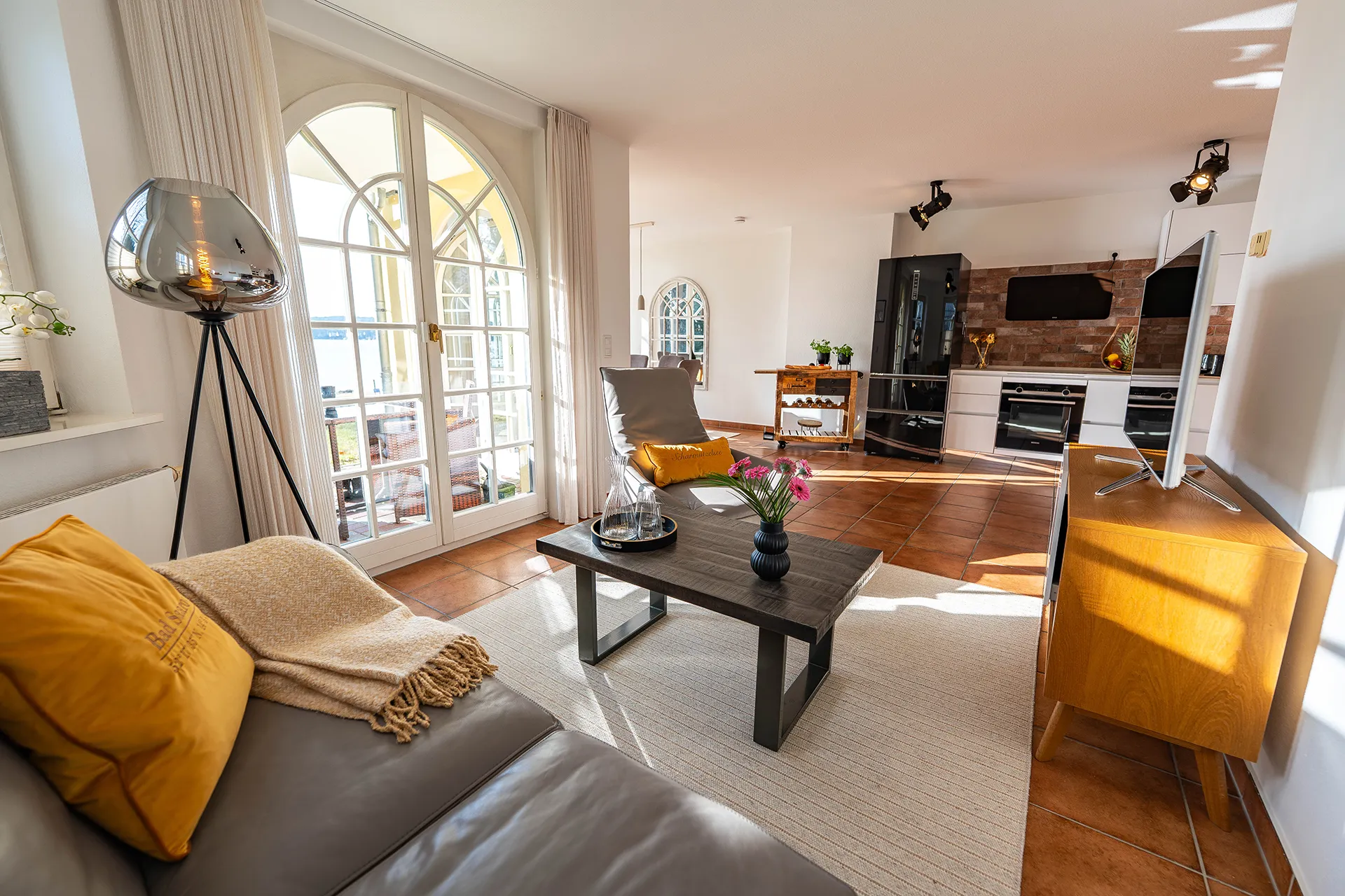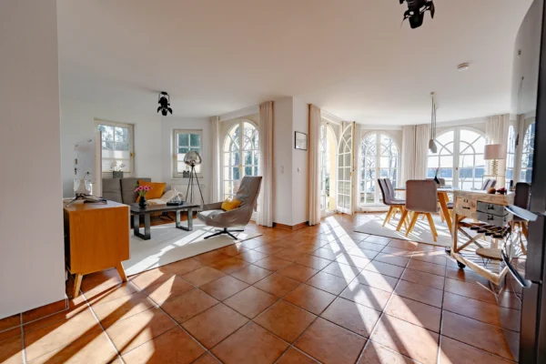 Unsere stilvoll eingerichtete Ferienwohnung im Gartengeschoss in der Villa Seeblick liegt direkt am Scharmützelsee. Helle, lichtdurchflutete Räume mit charmanten Bogenfenstern eröffnen einen traumhaften Seeblick.