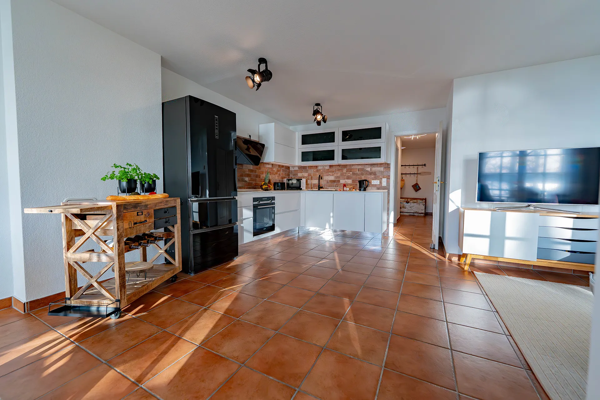 Der offene Wohn und Essbereich mit moderner Küche, Smart TV und WLAN lädt zum Entspannen ein. Zwei gemütliche Schlafzimmer und ein modernes Duschbad sorgen für Komfort. Von der Terrasse gelangen Sie ebenerdig in den Garten. Sonnenliegen, Grillplatz und Spielplatz im Gemeinschaftsgarten machen den Aufenthalt besonders angenehm. Ruhig gelegen und dennoch nah an Therme, Cafés und Strand.