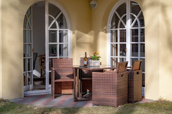 - Terrasse mit Sonnenliegen und gemütlicher Sitzecke