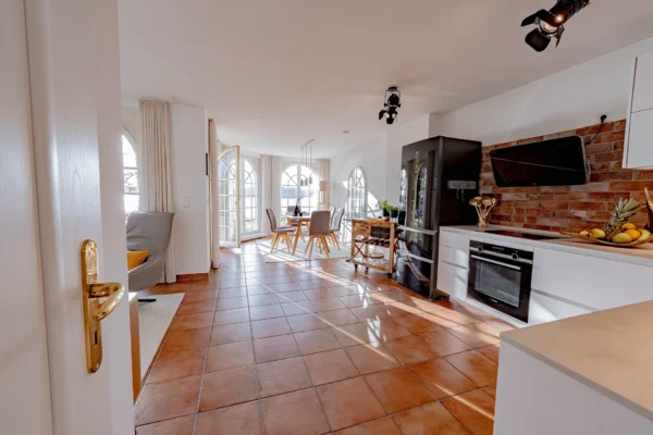 - Moderne, offene Küche im großzügigen Wohn und Essbereich