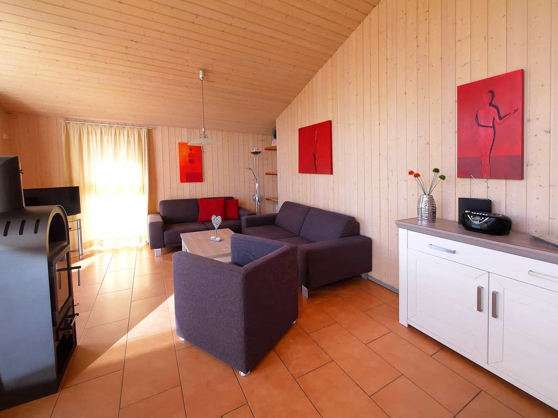 - Wohnraum mit Sitzgarnitur und Couchtisch